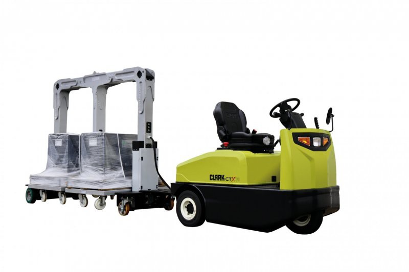 De CLARK electrotrekker is verkrijgbaar als alles-in-één oplossing en bestaat uit de CLARK CTX40-70 trektrekker met een trekvermogen van 4 of 7 ton en de CTR01 en CTR02 opleggers.